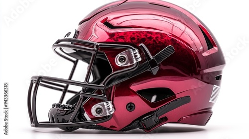 Fototapeta premium Close-up of a modern shiny red football helmet Generative AI