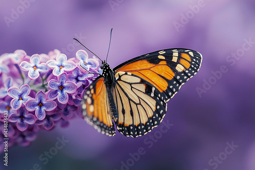 © 자인 김, Fototapeta premium close-up of a monarch butterfly on a blooming lilac (usa spring),
