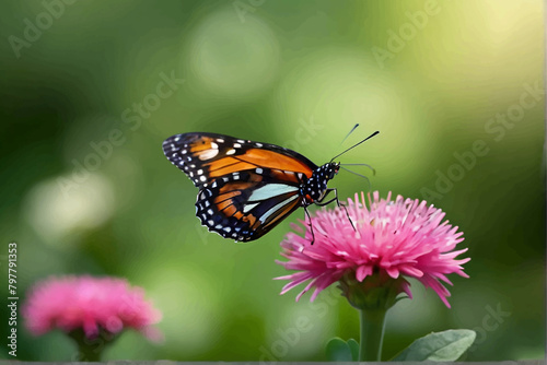 © Eyerin, Fototapeta premium close-up of a monarch butterfly on the spiky cone of a purple echinacea blossom