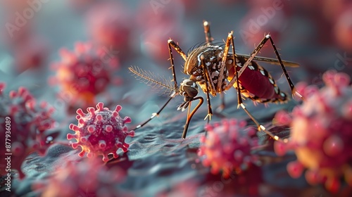 Fototapeta premium close-up of a mosquito transferring diseases with its bite