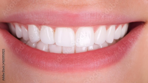 © Nan, Fototapeta premium Close-up of a natural smile with perfect white teeth, highlighting dental health and confidence.