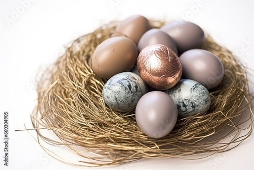 © Alfazet Chronicles, Obraz premium close-up of a nest with coins instead of eggs