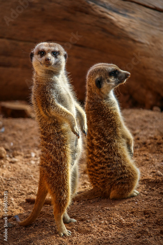 © Alberto, Fototapeta premium Close-up of a pair of standing meerkats