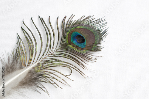 © Dmitry, Obraz premium Close-up of a peacock feather on a white background