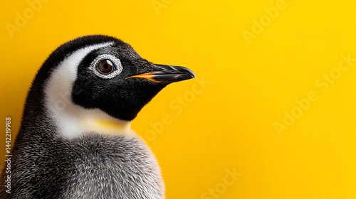 © Anita, Naklejka premium Close-up of a penguin against a vibrant yellow background, highlighting its features and colors