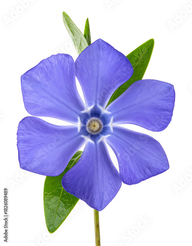 Fototapeta premium Close-up of a periwinkle flower with vibrant petals and green leaves on a...