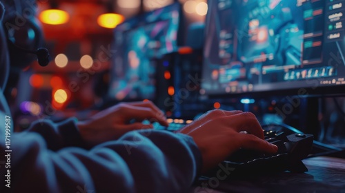 © renny, Obraz premium close-up of a person operating his computer
