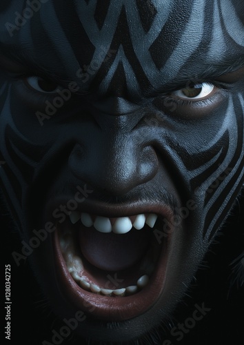 © Lifestyle Images, Naklejka premium Close-up of a person's face, specifically their face. the person appears to be angry or screaming, with their mouth wide open and their teeth bared.