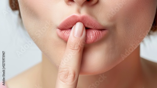 Obraz premium "Close-up of a person's lips silencing a scene."