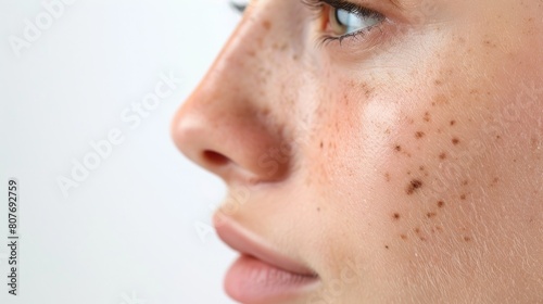 © Fotograf, Obraz premium Close up of a person with freckles, suitable for beauty or skincare concepts