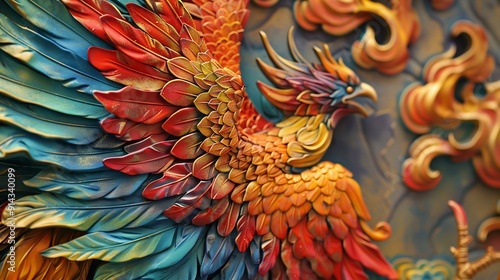© shadow, Naklejka premium Close Up of a Phoenix with Red and Gold Feathers