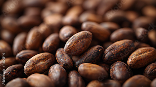 Naklejka premium Close-up of a pile of roasted cocoa beans.