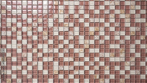 Fototapeta premium Close-up of a pink and white mosaic tile wall.