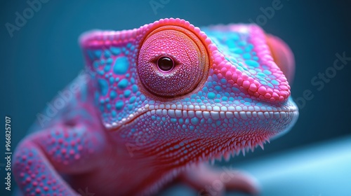 © Alienmarsh, Obraz premium Close-Up of a Pink Chameleon with Blue Spots