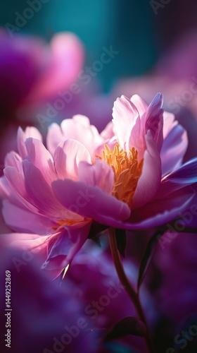 © 志华 崔, Fototapeta premium Close-up of a Pink Peony Flower with Soft Background
