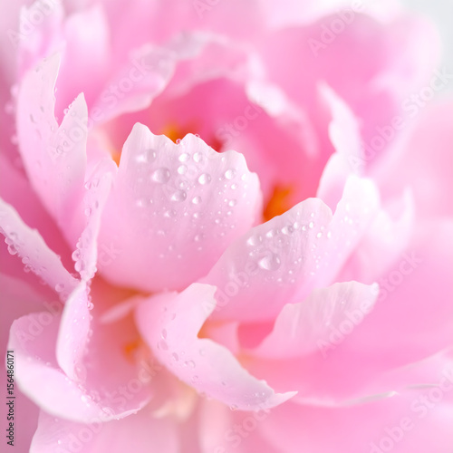 © Erwin, Fototapeta premium Close-up of a pink peony flower with water droplets on its delicate petals, showcasing its soft texture.