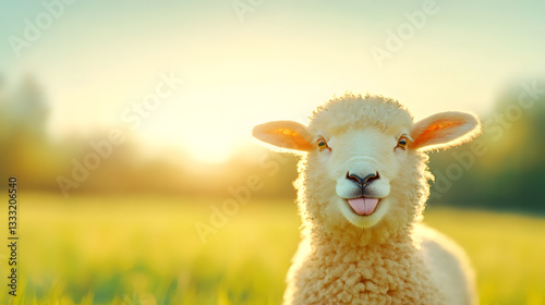 © faiz, Obraz premium Close-Up of a Playful Sheep Smiling in a Pastoral Setting