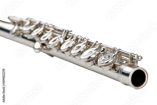 © Jaroot, Fototapeta premium Close-up of a polished silver flute. Keys and mechanism are clearly visible