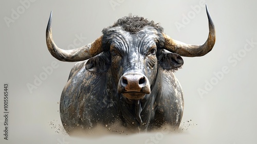 Naklejka premium Close-Up of a Powerful Buffalo Charging