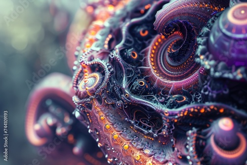 © Ifti Digital, Fototapeta premium Close Up of a Purple and Orange Object, Close-up of a cybernetic organism with intricate detailing, AI Generated