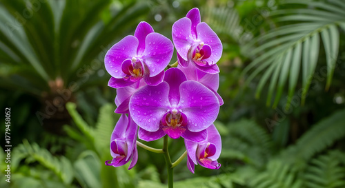 Fototapeta premium Close-up of a purple orchid with vivid color and elegant petals captured in...