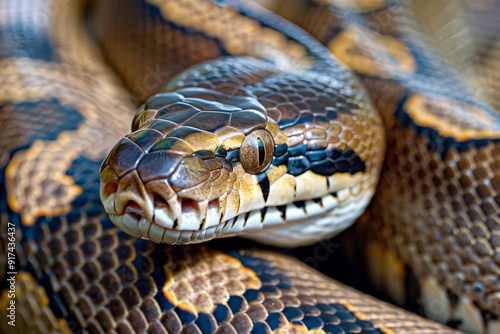 © ArtSpree, Fototapeta premium Close-up of a python. Snake isolated on a blurred background. Snake head and eyes.. Beautiful simple AI generated image in 4K, unique.