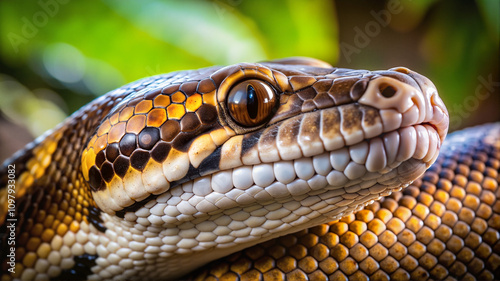 Obraz premium Close-up of a python, vibrant jungle setting