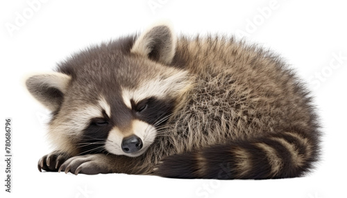 © Papugrat, Fototapeta premium close up of a raccoon sleeping isolated on transparent background cutout