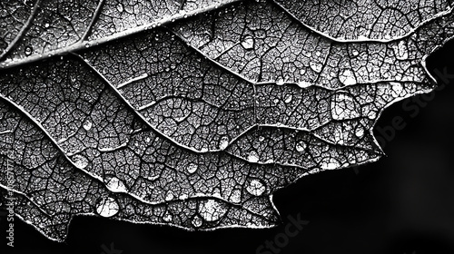 Fototapeta premium Close-up of a rain-soaked leaf capturing droplets of water glistening in...