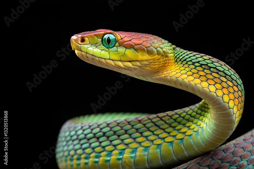 © KantorArtificial, Fototapeta premium close up of a rainbow color snake isolated in black