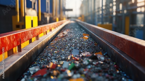 Obraz premium Close-up of a recycling conveyor belt at a modern ecological plant,...