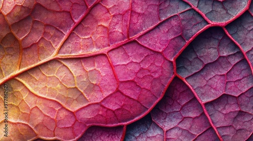 © Rere_Art151, Fototapeta premium Close-up of a Red and Purple Leaf's Veins and Texture