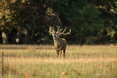 © © Raymond Orton, Naklejka premium Close up of a red deer stag Cervus elaphus calling during rutting season in autumn, UK.