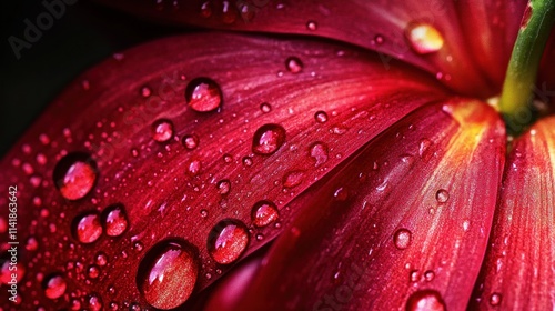 © milenialdesastudio, Fototapeta premium Close-up of a red flower petal with water droplets.