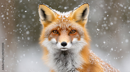 Fototapeta premium close-up of a red fox against a wintry backdrop, wildlife in winter