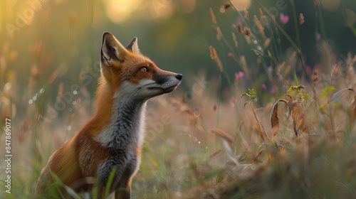 © Nazia, Fototapeta premium Close-Up of a Red Fox in a Natural Forest Setting, Wildlife Photography