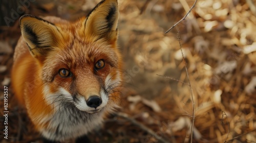 © Fotograf, Fototapeta premium Close-up of a red fox looking directly at the camera. Suitable for various nature and wildlife themes