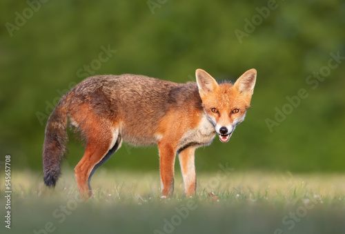 Fototapeta premium Close up of a red fox standing in a meadow in summer
