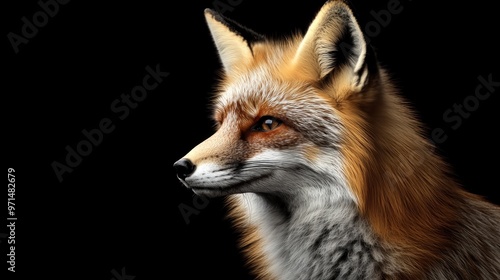 © BerkahStock, Fototapeta premium Close-up of a Red Fox with a Black Background