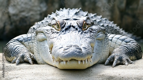 © Nangkir, Obraz premium Close-up of a resting crocodile.