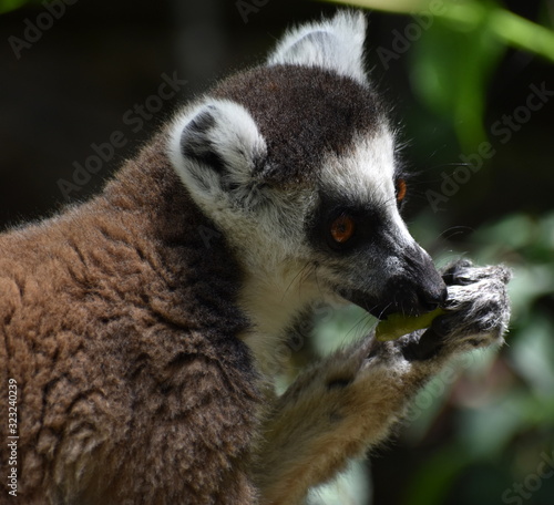 Obraz premium Close up of a ring-tailed lemur eating fruit in the forest