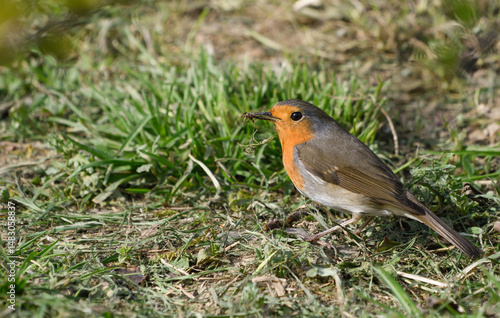 © roberto, Fototapeta premium Close-up of a robin eating a spider