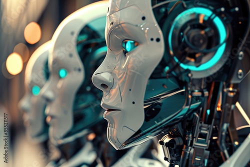 © vefimov, Fototapeta premium Close-up of a robot's head with glowing eyes