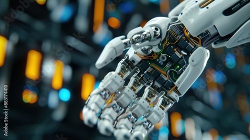 Fototapeta premium Close Up of a Robotic Hand With Exposed Circuitry in a Technological Setting