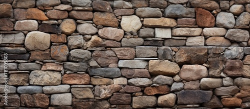 Obraz premium Close-up of a rugged stone wall with a red fire hydrant standing in front of it