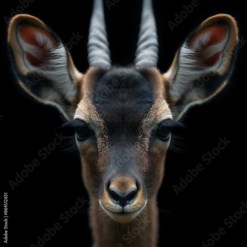 Fototapeta premium Close-up of a Saola's face, highlighting its unique features and striking horns.