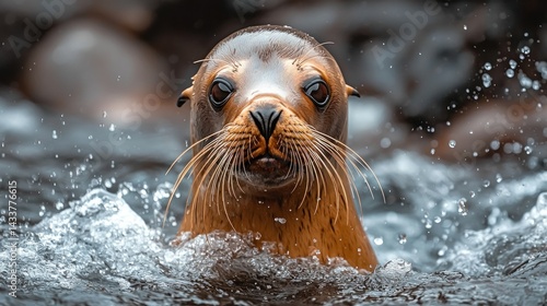 © Dece Std, Fototapeta premium Close-up of a sea lion emerging from water