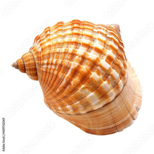 Obraz premium Close-up of a sea shell, intricate patterns of tan and white