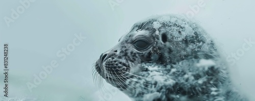 Obraz premium Close-up of a seal pup in the snow, showcasing its fur and peaceful...
