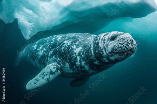 Fototapeta premium Close-up of a seal swimming in icy Arctic waters